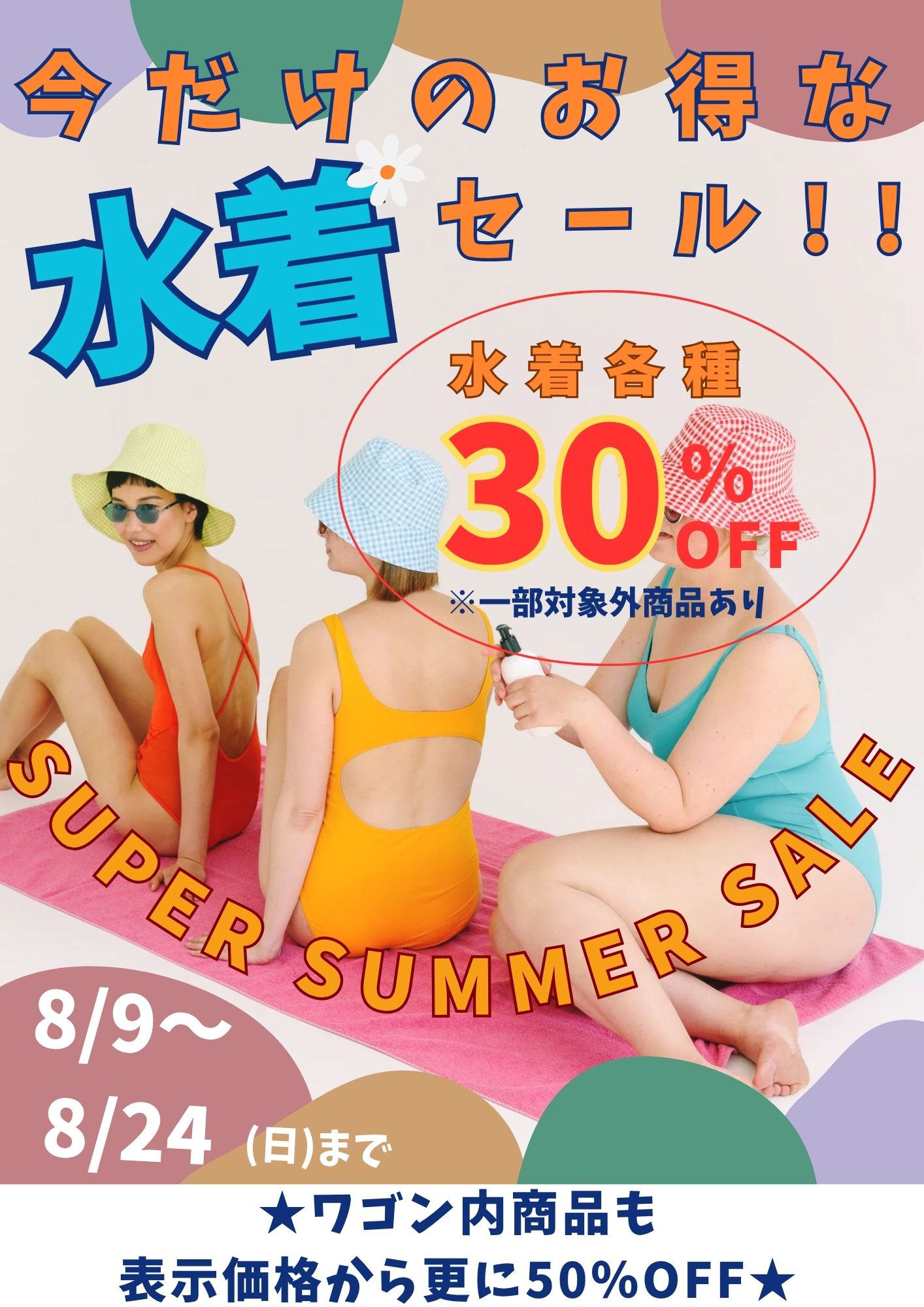 店内で販売中の水着がレジにて30%OFF!!(一部対象外商品あり)