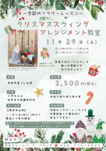 季節のフラワーレッスン「クリスマススウィングアレンジメント教室」を開催します