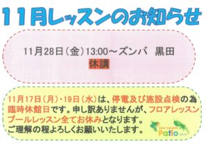 11月レッスン休講のお知らせ