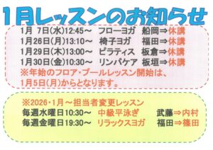 1月レッスンのお知らせです。ご確認お願いいたします。