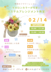 季節のフラワーレッスン「春のパステルアレンジメント教室」を開催します!