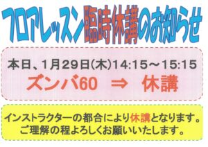 レッスンですが、インストラクターの都合により臨時休講となります。