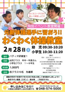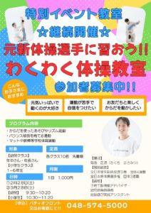 ☆特別イベント教室☆元新体操選手に習おう!!わくわく体操教室開催のお知らせ