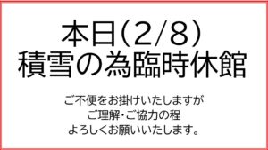 本日(2/8)積雪の為臨時休館