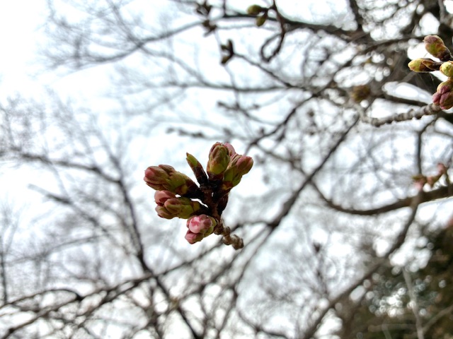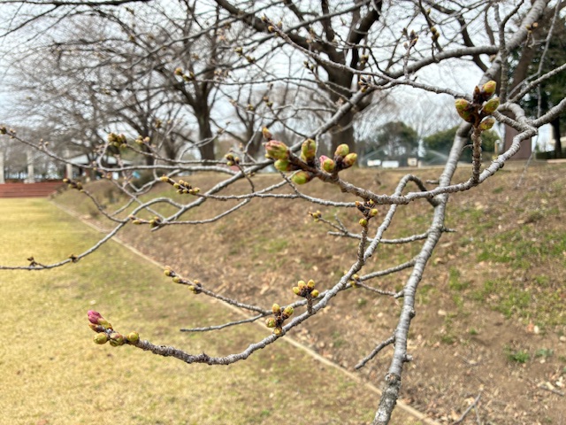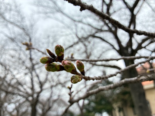 パティオの桜便り2025♪蕾の状況 サクラ 2026.3.20 パティオの桜の現在の状況をお届けします♬ 現在の桜の状況は蕾が少し膨らんできた所と、まだ固く色付いていないところとまばらな状態です。 ちらほら咲き始めているものもありますがパティオの桜はまだ蕾が多めです。ピンク色に色付いてきているものもあります。 開花は3月末ごろになりそうですね。 ※今後の天候・気温次第では日程が前後いたしますのでご了承ください。 <撮影日時:2025年3月19日(木) 午前 > 一覧へ戻る >